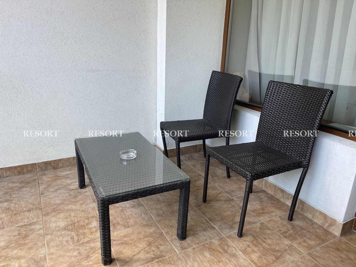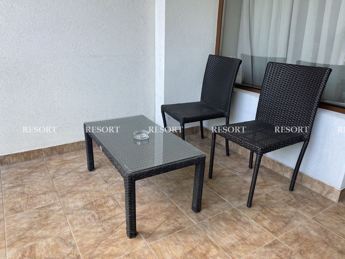 Апартаменты на четвертом этаже для незабываемого отдыха всей семьи. Имеется двухспальная кровать, двухспальный диван и одноместное кресло-кровать. Вместительный шкаф-купе в прихожей и встроенный шкаф в спальне. Также для дополнительных вещей есть комод. В кухне полноценная обеденная зона. На балконе также расположен стол и четыре стула для отдыха на свежем воздухе.
