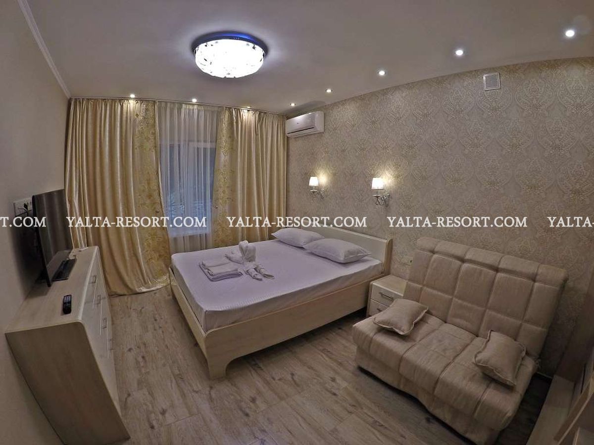 В одной спальне двухспальная кровать, во второй два двухспальный дивана.