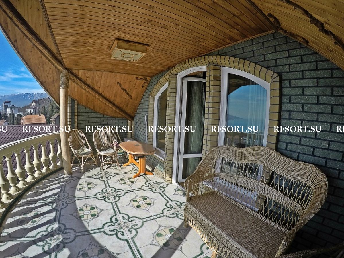 Третий этаж - одна большая спальня, сан.узел - ванная, просторный холл, большая мансарда с панорамным видом на море и горы.