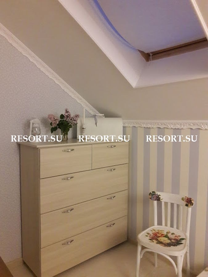 3эт- две спальных комнаты с двухместными кроватями и мансардными окнами и одна небольшая но очень уютная комната с дизайнерским ремонтом и одноместной кроватью во всех комнатах кондиционеры , выход на балкон