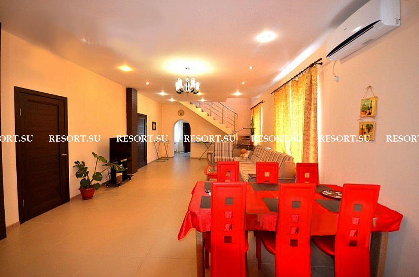В доме просторная гостиная, 5 спален, кухня, 2 санузла.