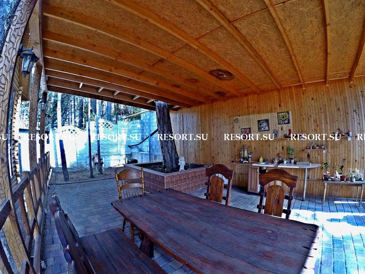 Во дворе дома оборудована большая зона для отдыха с зоной барбекю, большой стол.