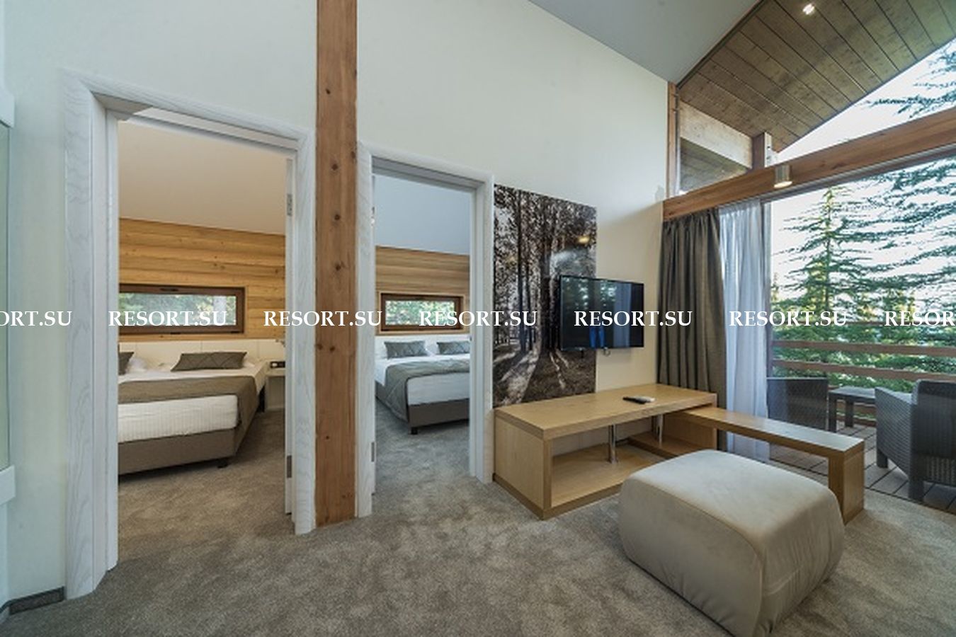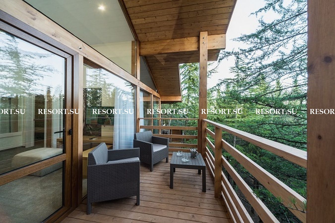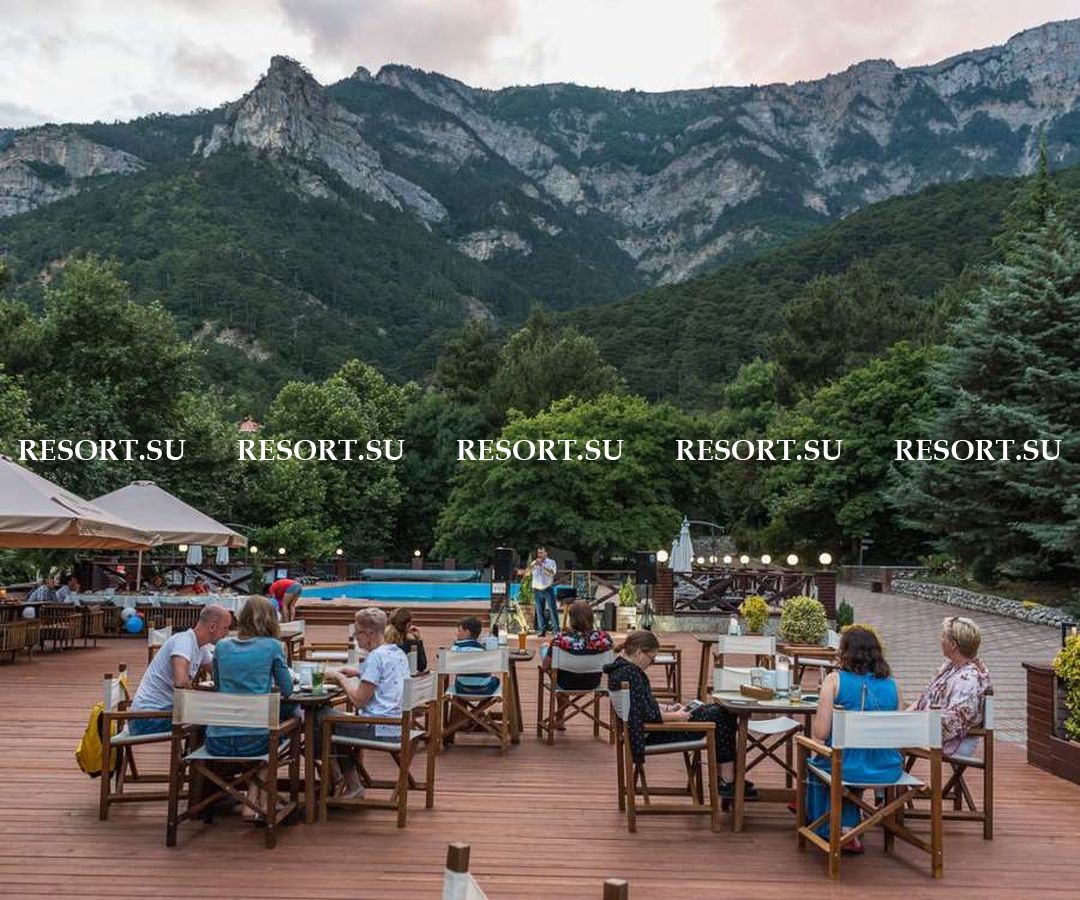 - комната отдыха - столовая с балконом с видом на горы