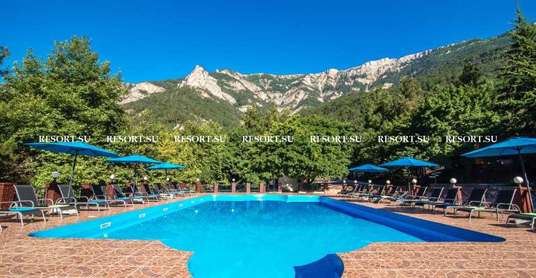 - терасса с шезлонгами и с видом на горы Ялты и заповедник