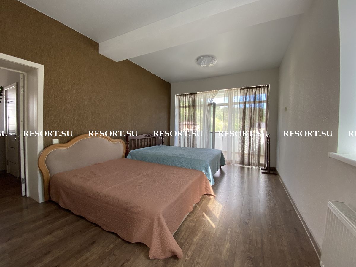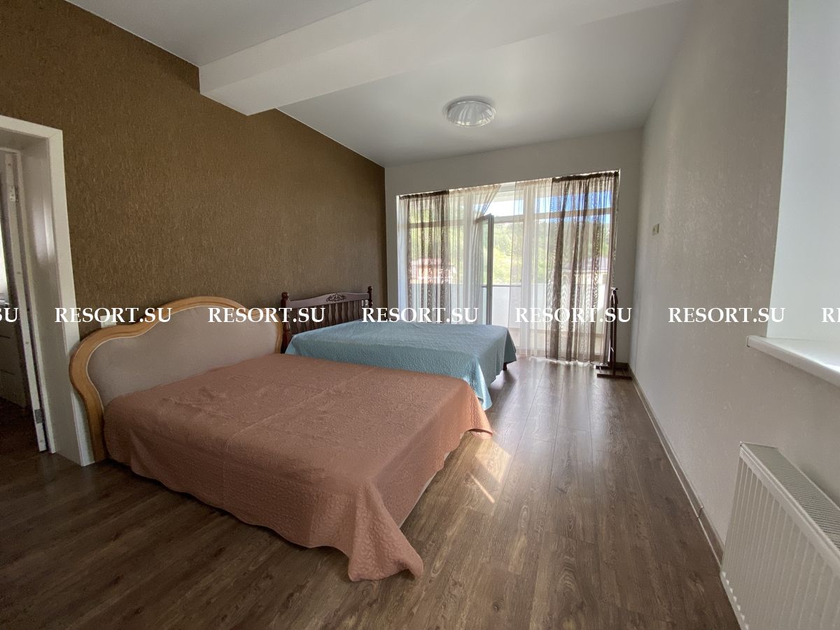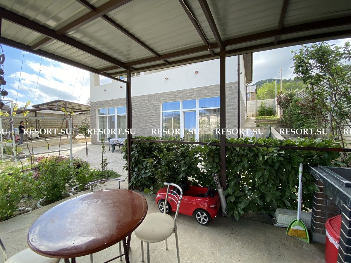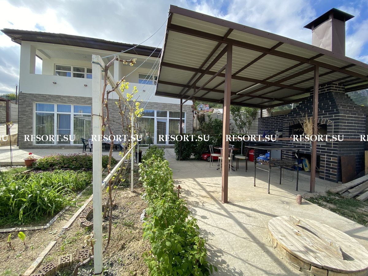 На участке плодоносящие по сезону фруктовые деревья и красивые цветы: виноград, яблони, черешня, гранат, хурма, вишня, персик, абрикос, инжир, шелковица, английская роза, чайная роза. Зона барбекю, просторная открытая терраса для душевных вечерних посиделок с прекрасным видом на заповедник и ущелье.