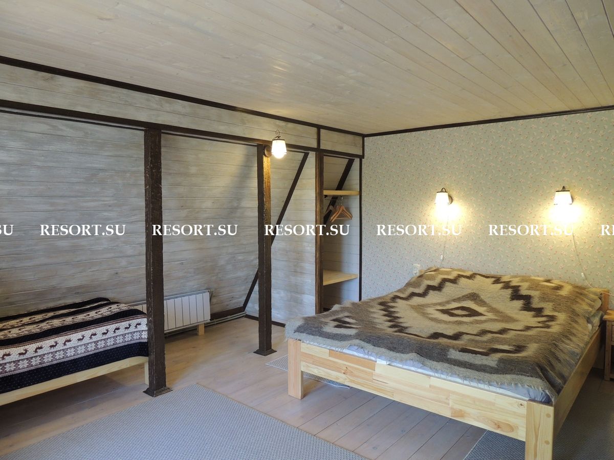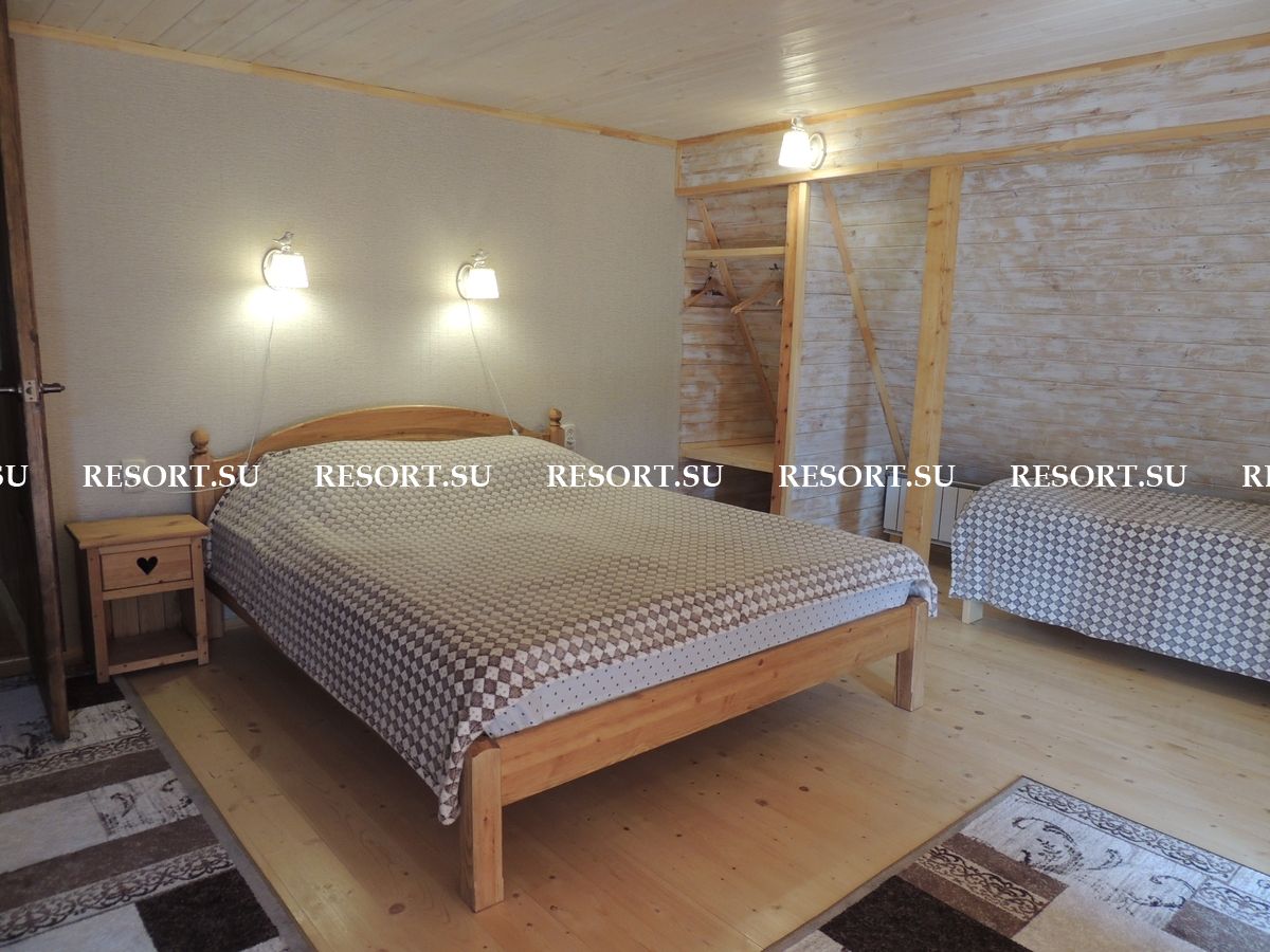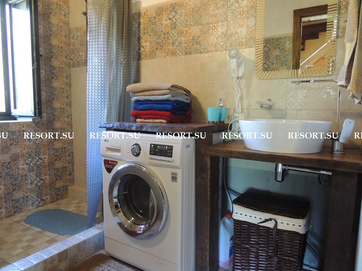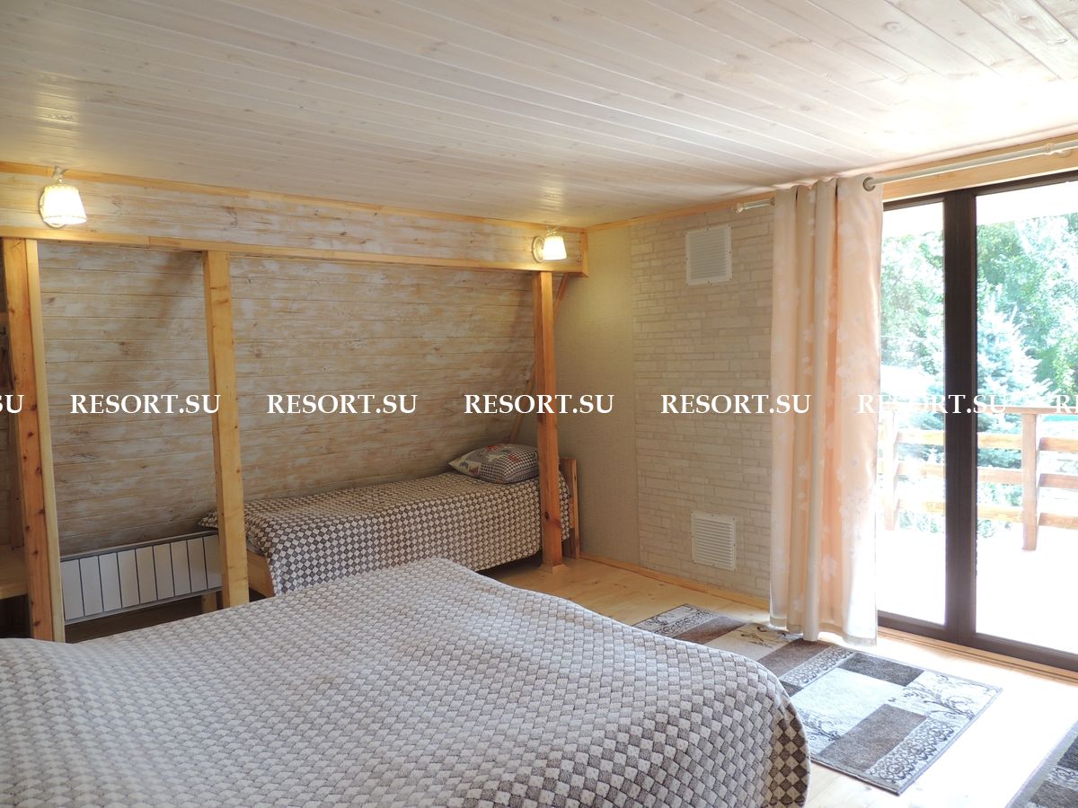 2-й этаж. Три спальни с двуспальными кроватями (есть места для детей ). Туалетная комната с душевой кабинкой. Большая лоджия 15 кв.м с очень красивым видом на горы и усадьбу (выход из 2-х спален).