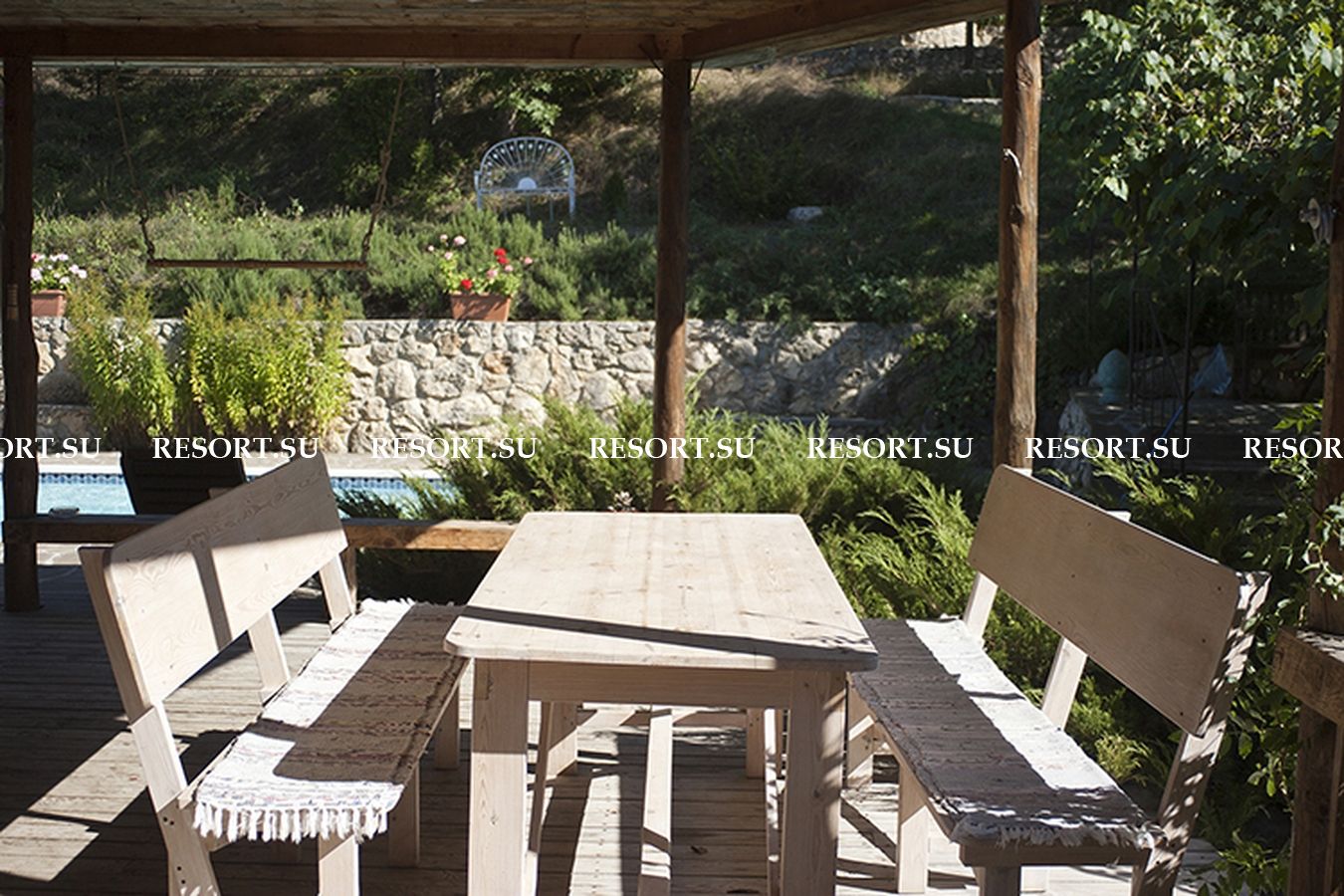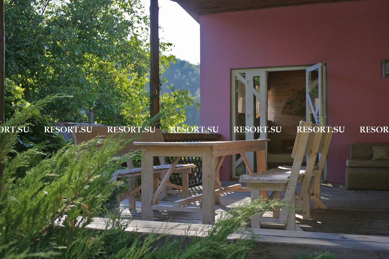 - Большая и уютная веранда с мягкой мебелью и выходом к бассейну