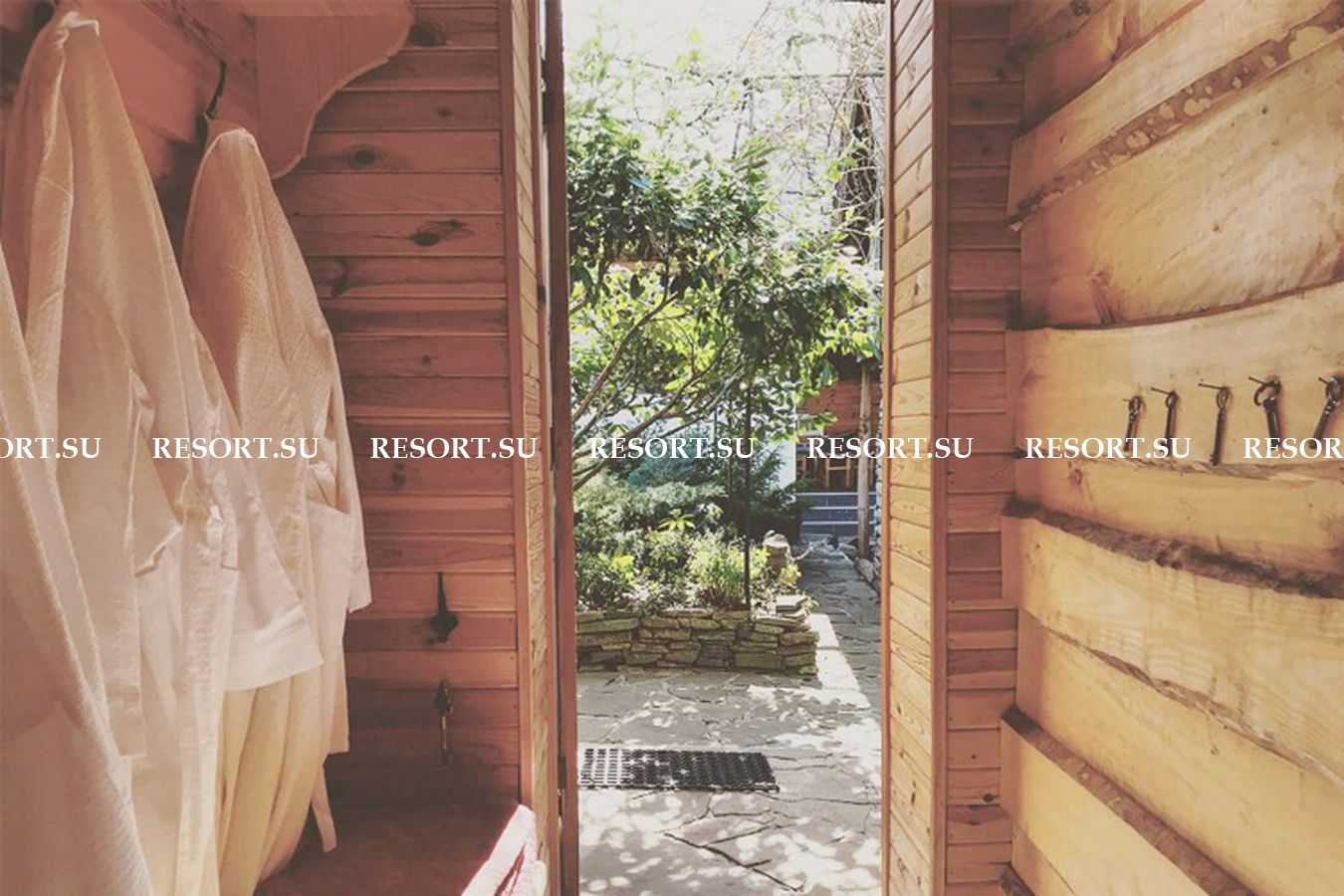 - Дровяная липовая сауна с купелью, соляной пещерой и большой комнатой для отдыха (за дополнительную плату)
